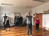 O 9.00 zaczynamy z ćwiczeniami rehabilitacyjnymi, zakładamy stroje do ćwiczeń, dresy, włączamy kamerki i ćwiczymy.