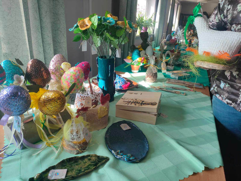 W dniu 21 marca nasza społeczność miała okazje spotkać się w miejscu, które od zawsze jest dla nas bardzo przyjazne. Pani Dyrektor Biblioteki Publicznej w Psarach jak co roku zaprosiła nas na wspólne celebrowanie zbliżających się Świąt Wielkanocnych. W tym dniu uczestnicy zaprezentowali swoje zdolności wokalne oraz rytmiczne. Niewątpliwie przygotowana prezentacja pod czujnym okiem Pana Grzegorza oraz Pani Ewy zrobiła wrażenie na publiczności Na kiermaszu, można, było zakupić piękne, niepowtarzalne świąteczne ozdoby, które wytwarzają uczestnicy pod kierunkiem terapeutów. Nie zabrakło również słodkiego poczęstunku przygotowanego przez panie terapeutki.