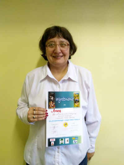Ponieważ pandemia bardzo mocno ograniczyła również i tę sferę naszej działalności, z entuzjazmem przyjęliśmy wiadomość o Ogólnopolskim Konkursie Plastycznym „Oligoimpresje – wizja Nieba i Piekła” zorganizowanym przez Specjalny Ośrodek Szkolno-Wychowawczy im. Jana Pawła II w Jaworznie oraz Miasto Jaworzno. Interpretując temat konkursu należało uwzględnić, że : Niebo to nie tylko Anioły, niebem może być czas spędzony z rodziną, spełnione marzenia, przyjemne dla nas chwile, przeżycia i emocje warte uwiecznienia. Piekło to to, czego się boimy, co jest dla nas bolesne, czego nie chcemy.]Wielce utytułowana Komisja Konkursowa doceniła interpretację tematu i poziom artystyczny pracy wykonanej przez naszą warsztatową koleżankę Annę nagradzając ją wyróżnieniem i zapraszając po jego odbiór do Jaworzna.